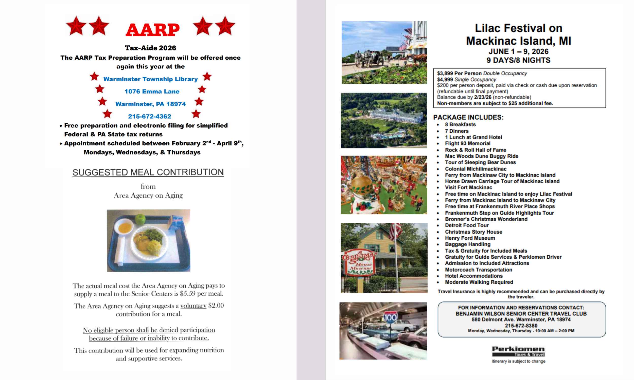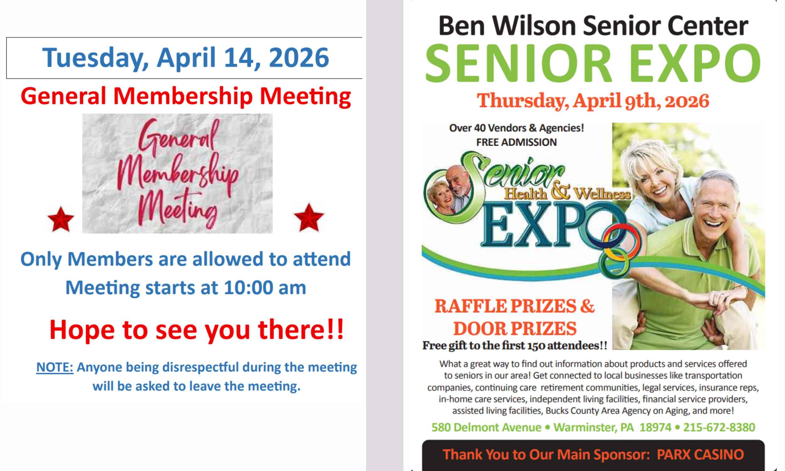 The Ben Wilson Senior Activity Center (BWSAC) is a 501(c)(3) non-profit organization located in Warminster, Pennsylvania. Our mission is to promote the social welfare of persons aged 55 and better by encouraging good fellowship and companionship among members through social activities, community improvement projects, and other activities conducive to the physical, mental, and social well-being of our members.